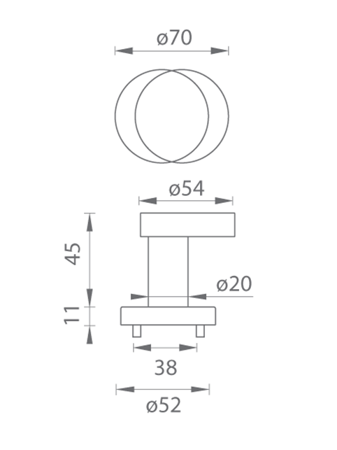 Dvojová koule Vysena na kulaté rozetě je vyrobena z vysoce kvalitní nerezové oceli, známé jako nerezová ocel, a je ošetřena povrchem. Síč ze série Tupai Standard Line má průměr 54 mm a kulatá rozeta má průměr 52 mm a tloušťku 11 mm.