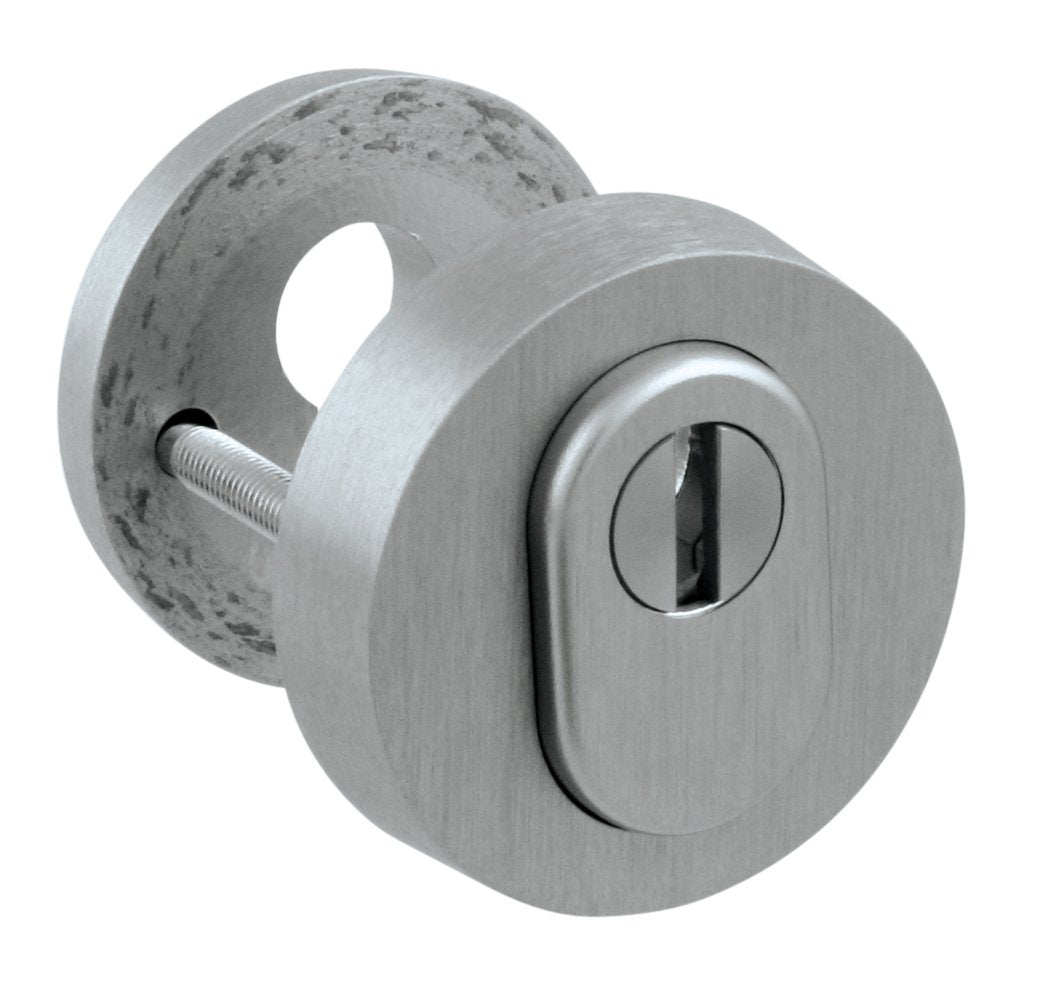 Bezpečnostní kulatá rozeta s krytem válce je vyrobena z hliníku a má povrchové ošetření.