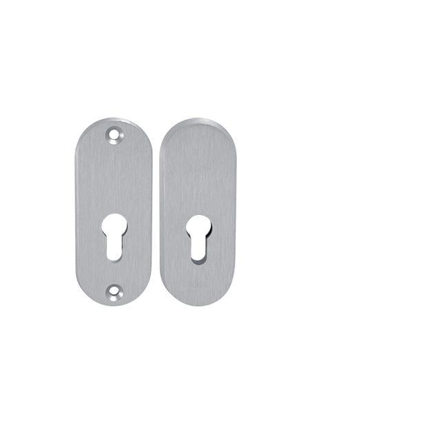 Další bezpečnostní oválná rozeta bez zakrytí vložky válce je vyrobena z hliníku a má povrchové ošetření.