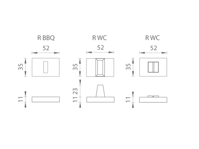Obdélníková rozeta je vyrobena z vysoce kvalitních materiálů - mosaz / zamak a je ošetřena povrchem. Roseta má rozměry 52 mm x 35 mm a čtvercovou díru pro vnitřní klíč (BBQ) nebo WC sadu s vestavěným klíčem. Balíček obsahuje 2 kusy rozet (pár) a toalety jsou v balíčku jako sada.
