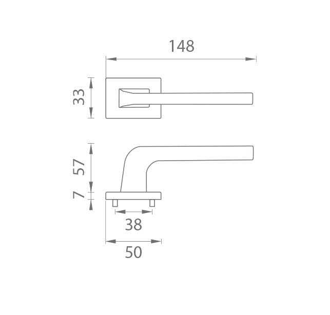 Rozetová klika pro interiérové dveře s obdélníkovou rozetou je vyrobena z vysoce kvalitních materiálů - zamak a má povrchovou úpravu. Rozeta měří 50 x 33 mm a má tloušťku pouhých 7 mm. Minimalistický design rozety s vysokou stabilitou kliky má jemný efekt, který nechává prostor pro vyniknout designu samotné kliky.
