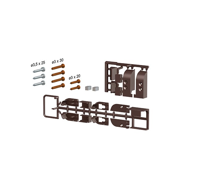 Nylonové tlačítko pro rozšiřování těsnicího proužku integrovaným mosazným šroubem pro nastavení prodloužení. Mosazný šroub pro nastavení sklonu zatahovacího těsnicího proužku. Boční montáž pevného profilu. Boční podložky pro oboustranné montáž zevnitř nebo vně křídla. Maximální prodloužení je 13 mm. Upevnění profilu bez nutnosti vytáhnout zatahovací těsnicí pás. Gumová těsnění. Tyč je testován na 200 000 cyklů a může být zkrácena max. 100 mm.