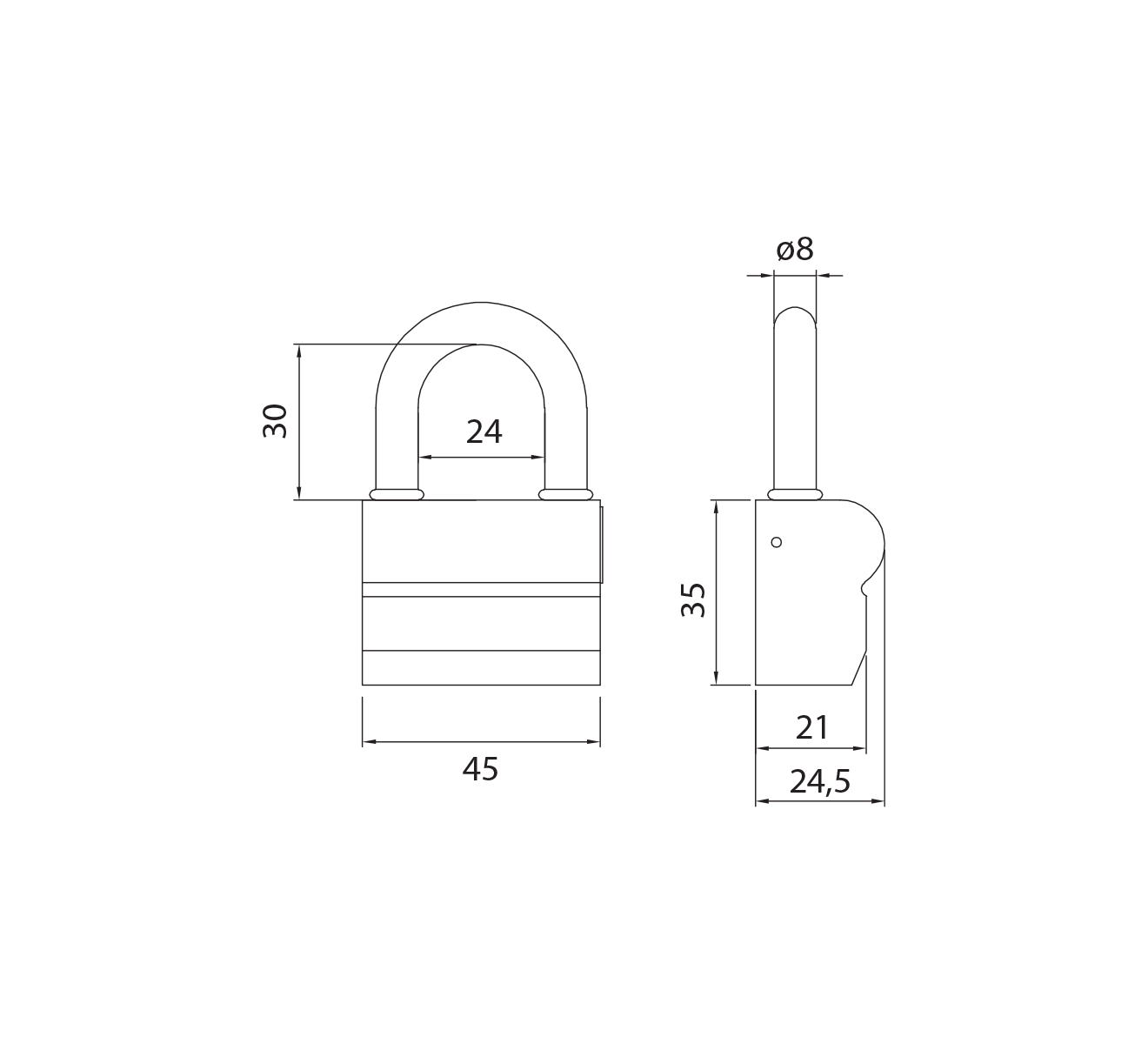 DORMAKABA DK - AP2pro S visací zámek - třmen 30 VHZ 45 - Bezpečnostní visací zámky