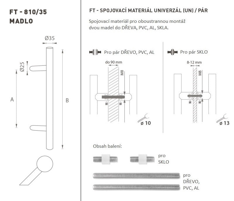 Rukojeť dveří je vyrobena z vysoce kvalitní nerezové oceli, známé jako nerezová ocel, a je ošetřena povrchem. Profil rukojeti je 35 mm. Univerzální (UN) sada obsahuje upevňovací prvky pro oboustranné montáž dvou držadel ve dřevě, PVC, AL, Glass.æ'â â € â € â â € â € â â â â â â â â, â â, â â, â â, â „Š ¡¡sr“