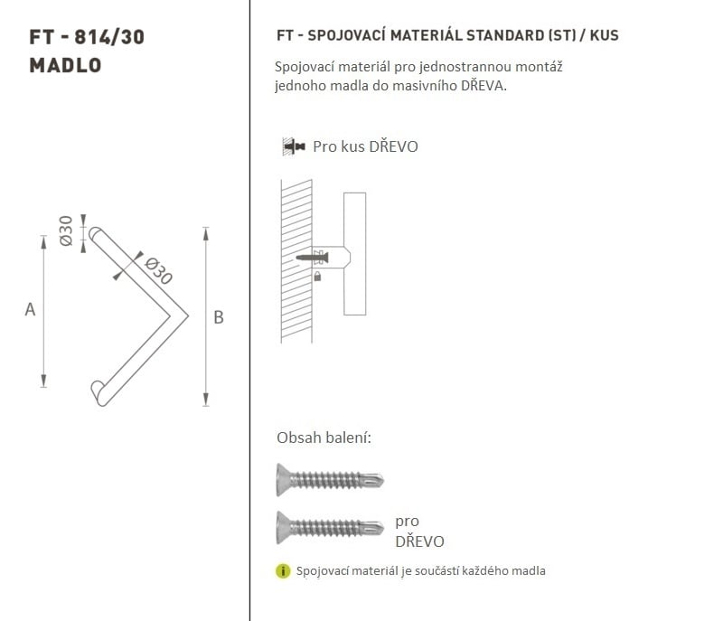 Rukojeť je vyrobena z vysoce kvalitní nerezové oceli, známé jako nerezová ocel, a je povrchově upravena. Profil rukojeti 30 mm. Cena uvedená je za 1 kus. Pro tyto rukojeti doporučujeme zakoupit spojovací materiál podle typu požadovaného materiálu.