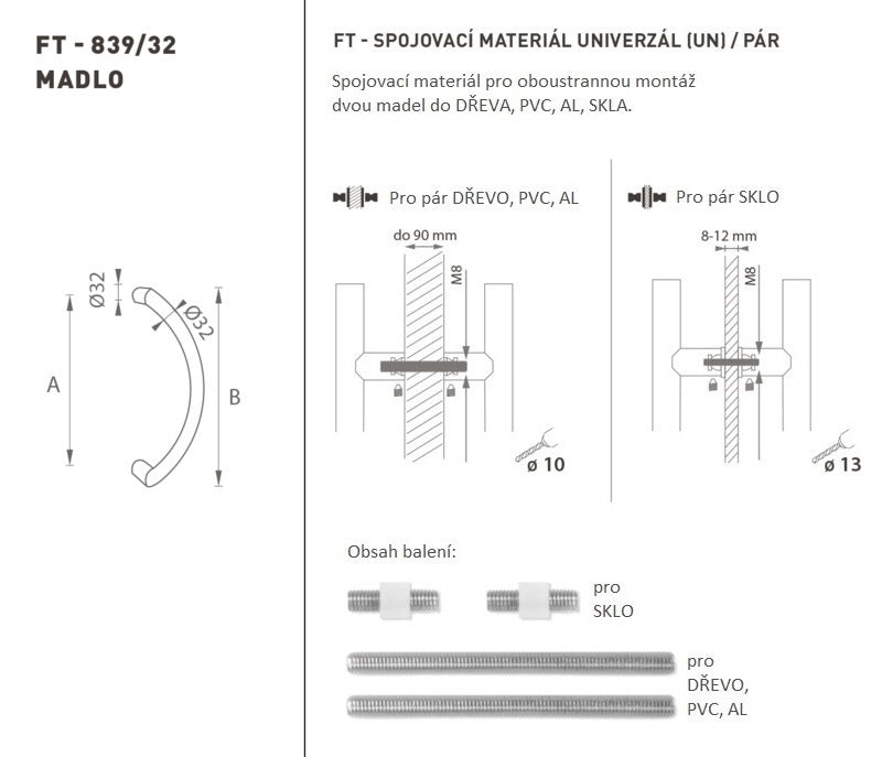 Rukojeť dveří je vyrobena z vysoce kvalitní nerezové oceli, známé jako nerezová ocel, a je ošetřena povrchem. Profil rukojeti je  € â € â € â, â € â, â, â, dě dě â, dě â, â, â, â, â, â, â, â, dě â, dě â, dě â, dě â, dě â, dě â, dě ¢ â, â, dě ¢ â, â, dě â, dě â, dě â, dě â, dě â, dě â dě ¢ â, â, dě ¢ 32 mm. Univerzální (UN) sada obsahuje upevňovací prvky pro oboustranné montáž dvou zábradlí ve dřevě, PVC, Al, Glass.