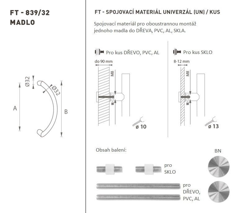 Rukojeť dveří je vyrobena z vysoce kvalitní nerezové oceli, známé jako nerezová ocel, a je ošetřena povrchem. Profil rukojeti je  € â € â € â, â € â, â, â, dě dě â, dě â, â, â, â, â, â, â, â, dě â, dě â, dě â, dě â, dě â, dě â, dě ¢ â, â, dě ¢ â, â, dě â, dě â, dě â, dě â, dě â, dě â dě ¢ â, â, dě ¢ 32 mm. Univerzální (UN) sada obsahuje upevňovací prvky pro oboustranné montáž jedné rukojeti ve dřevě, PVC, AL, Glass.