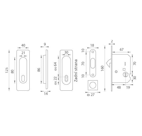 FT - Square posuvné dveře - bb / d - skořápky a kliky pro posuvné dveře