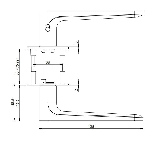 Součástí mechanismu rukojeti je vratná pružina. Výstupky na rozetě zabraňují jejímu otáčení a šrouby pro zašroubování po celé šířce dveří zaručují pevnější a stabilnější uchycení kování.