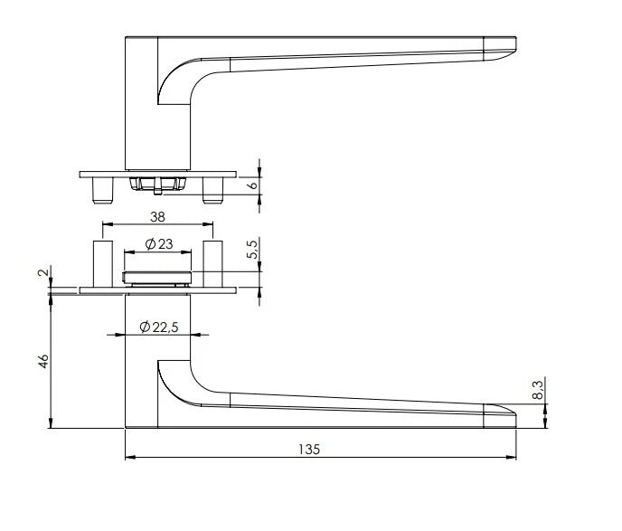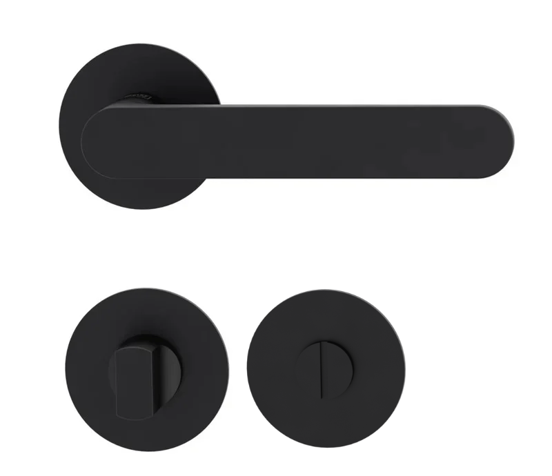 Mechanismus rukojeti zahrnuje návratovou jaro. Výstupy na rozetu brání jejímu otáčení a šrouby pro zašroubování celou šířkou dveří zaručují silnější a stabilnější přizpůsobení armatur.