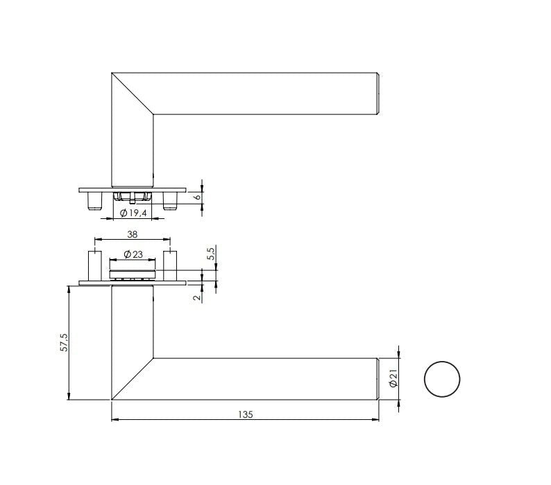 Mechanismus rukojeti obsahuje vratnou pružinu. Výstupky na rozetě zabraňují jejímu otáčení a šrouby pro zašroubování po celé šířce dveří zaručují pevnější a stabilnější uchycení kování.