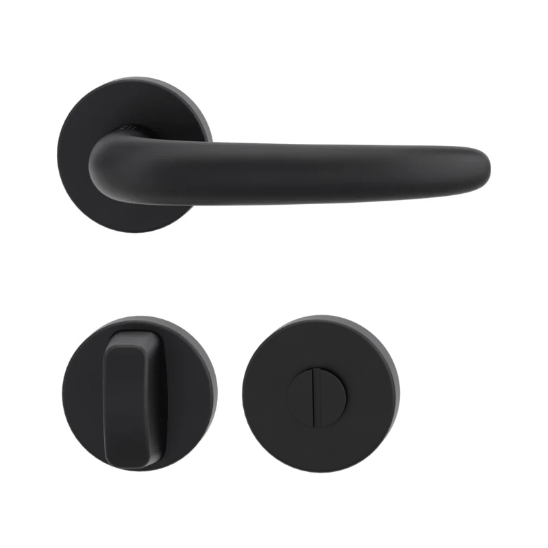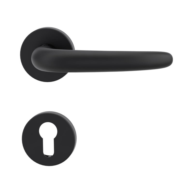 Součástí mechanismu rukojeti je vratná pružina. Výstupky na rozetě zabraňují jejímu otáčení a šrouby pro zašroubování po celé šířce dveří zaručují pevnější a stabilnější uchycení kování.