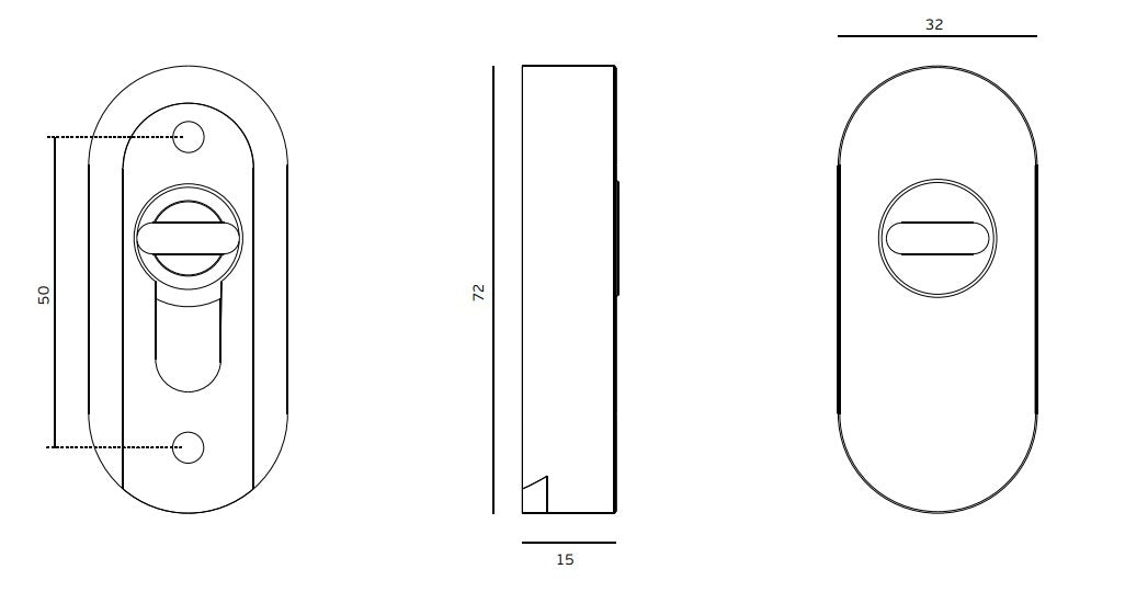 Bezpečnostní úzká oválná rozeta s víkem válce je vyrobena z kvalitního materiálu, nerezové oceli a je povrchově upravena.