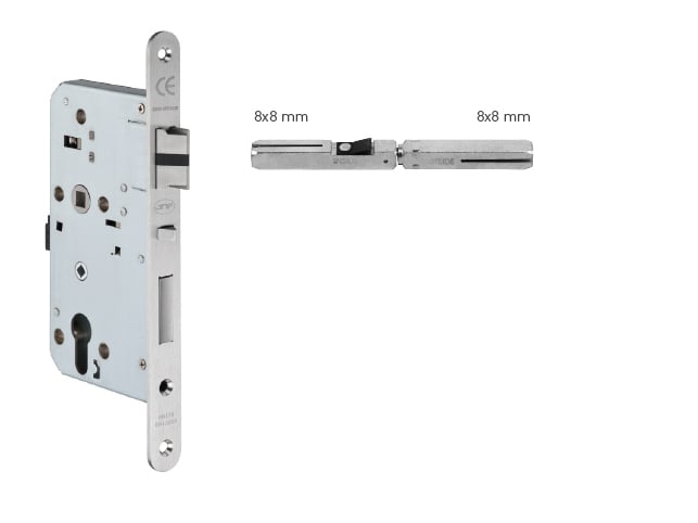 Průchod dveřmi je vždy možný při stisknutí vnitřní kliky - v odemčeném stavu klika zatáhne závoru, v zamčeném stavu klika zatáhne závoru a závoru.