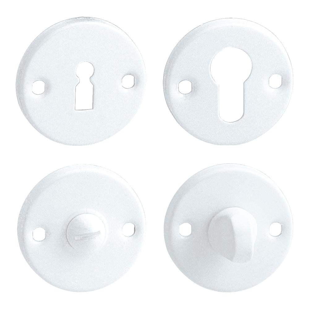 Kulatá rozeta je vyrobena z hliníku a má povrchovou úpravu. Rozeta má průměr 54 mm, tloušťku 8 mm a oválný otvor pro vnitřní klíč (BB), otvor pro vložku cylindrické vložky (PZ) nebo WC sadu se zabudovaným klíčem. Balení obsahuje 2 ks rozet (pár) a toaletní rozety jsou v balení jako sada.