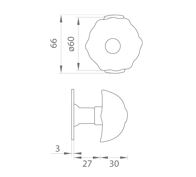 Přímá koule s kozanou rozetou je vyrobena z kovaného železa a má povrchové ošetření.