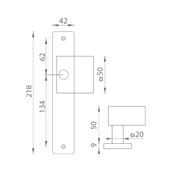 Masivní odsazená dveřní klika na čtvercovém štítu je vyrobena z vysoce kvalitní nerezové oceli, známé jako nerezová ocel, a je povrchově upravena. Rukojeť měří 50 mm x 50 mm a čtvercový štít měří 42 mm x 218 mm. Klika používaná pro kliky QUADRA - SH v provedení klika/klika. Příplatek za rukojeť použitou na jiných klikách na čtvercovém štítu (SH).