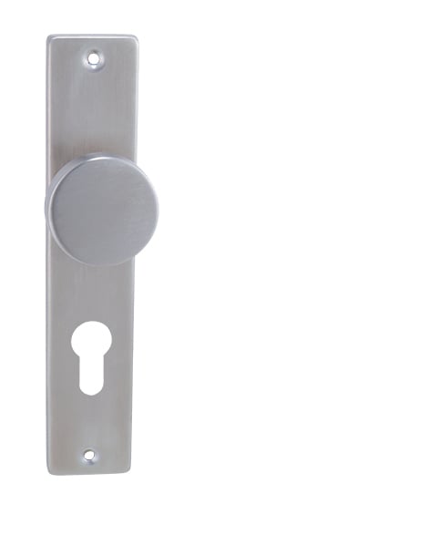 Dveře upevněné rovnou koulí na čtvercovém štítu jsou vyrobeny z vysoce kvalitní nerezové oceli, známé jako nerezová ocel, a jsou povrchově upraveny. Koule má průměr 49 mm a štít měří 42 mm x 218 mm.
