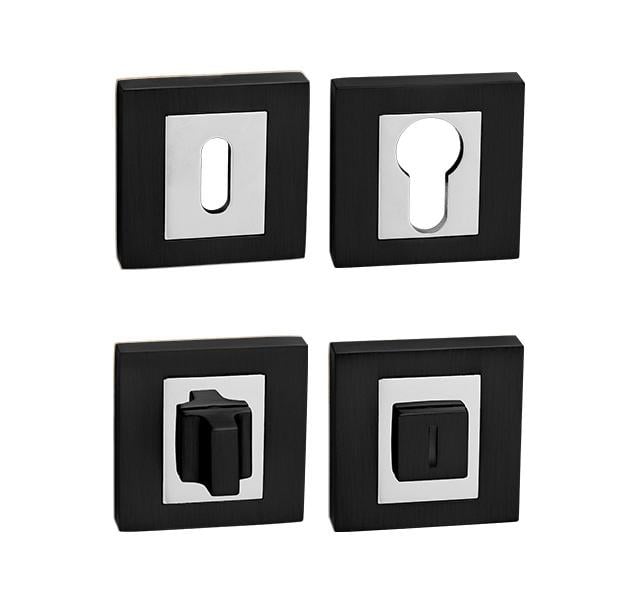 Čtvercová rozeta je vyrobena ze zamaku a hliníku a je povrchově upravena. Rozeta má rozměry 52 mm x 52 mm, tloušťku 10 mm a má oválný otvor pro vnitřní klíč (BB), otvor pro cylindrickou vložku (PZ) nebo WC sadu se zabudovaným klíčem. Balení obsahuje 2 ks rozet (pár) a toaletní rozety jsou v balení jako sada.