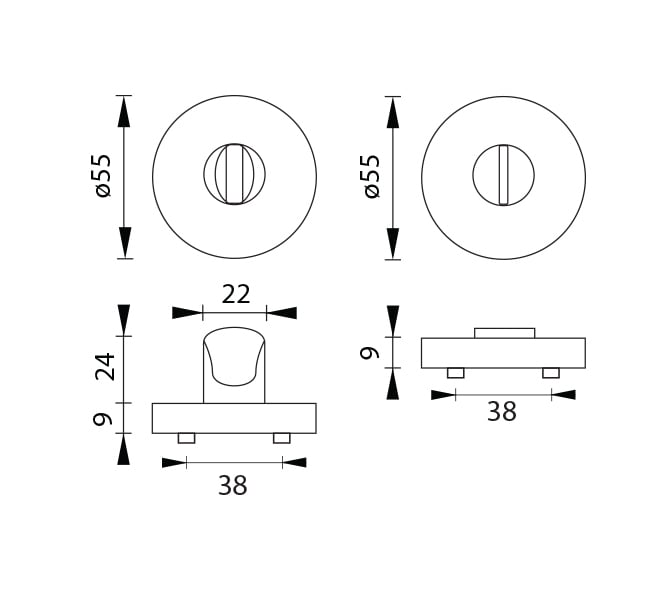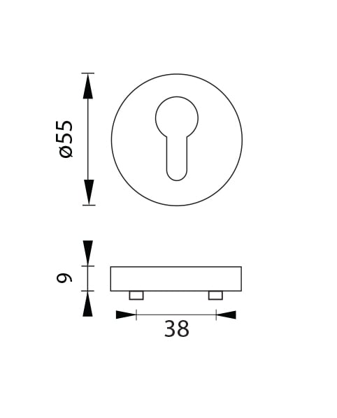 Kulatá rozeta je vyrobena z vysoce kvalitní nerezové oceli, známé jako nerezová ocel, a je povrchově upravena. Rozeta má průměr 54 mm, tloušťku 9 mm a oválný otvor pro vnitřní klíč (BB), otvor pro vložku cylindrické vložky (PZ), WC set s vestavěným klíčem, WC set se zabudovaným klíčem a indikátorem nebo rozetu bez tzv. otvoru. zástrčka. Balení obsahuje 2 ks rozet (pár) a toaletní rozety jsou v balení jako sada.