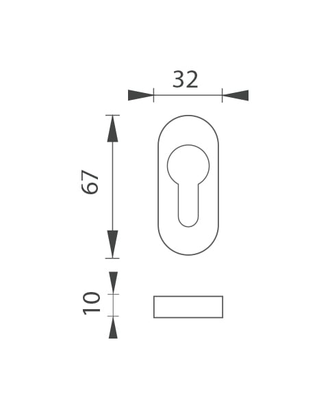 Úzká oválná rozeta je vyrobena z vysoce kvalitní nerezové oceli, známé jako nerezová ocel, a je ošetřena povrchem. Roseta má rozměry 32 mm x 67 mm, tloušťku 10 mm a otvor pro vložku válce (Pz) nebo rozettu bez otvoru, tzv. Balíček obsahuje 2 kusy rozet (pár).