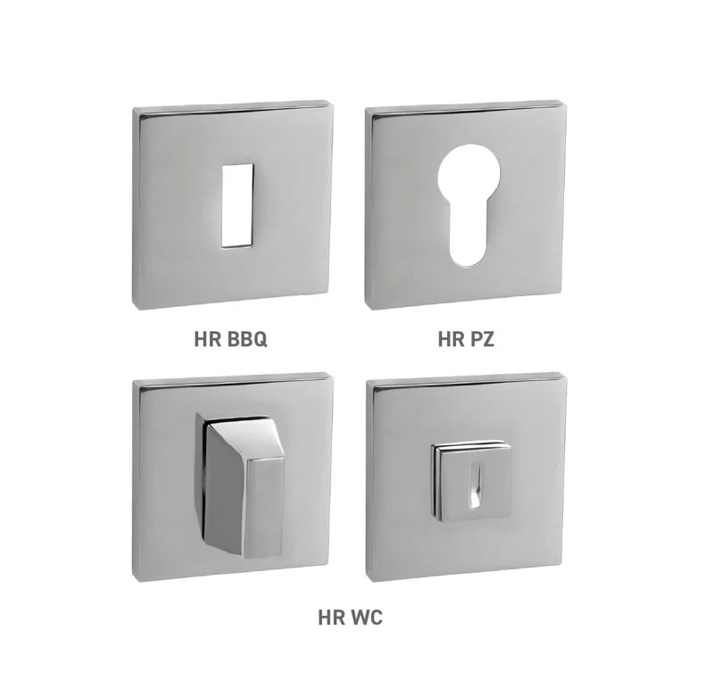 Čtvercová rozeta je vyrobena z vysoce kvalitního materiálu Zamak - zinkové slitiny a má povrchové ošetření.