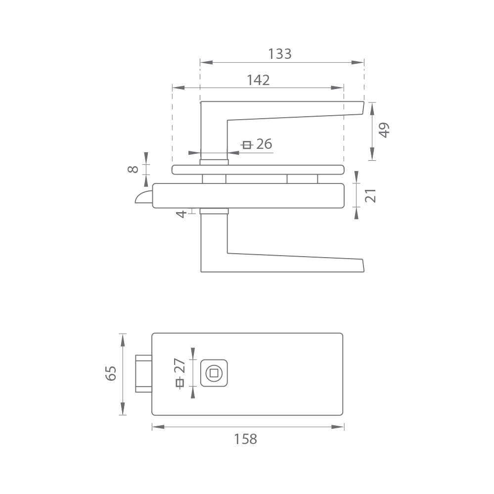 Otvor pro rukojeť obsahuje omezující mechanismus pro maximální eliminaci hry čtverce. Mechanismus zámku umožňuje nastavit pružinovou sílu a pomáhá udržovat rukojeť v vodorovné poloze.