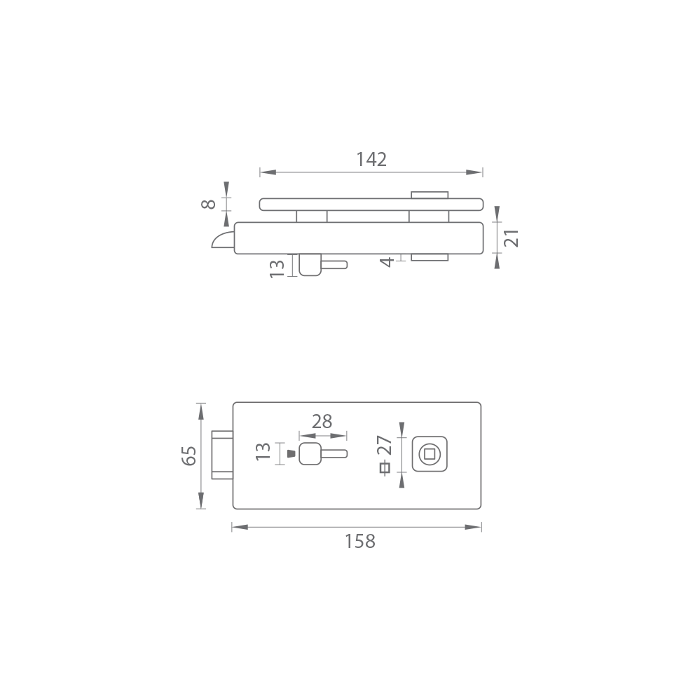 Otvor pro rukojeť obsahuje omezující mechanismus pro maximální eliminaci hry čtverce. Mechanismus zámku umožňuje nastavit pružinovou sílu a pomáhá udržovat rukojeť v vodorovné poloze.