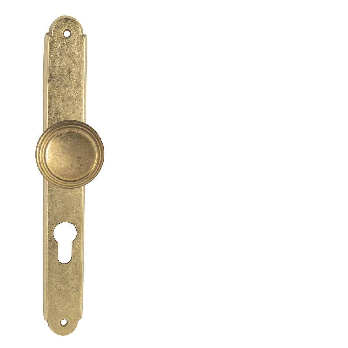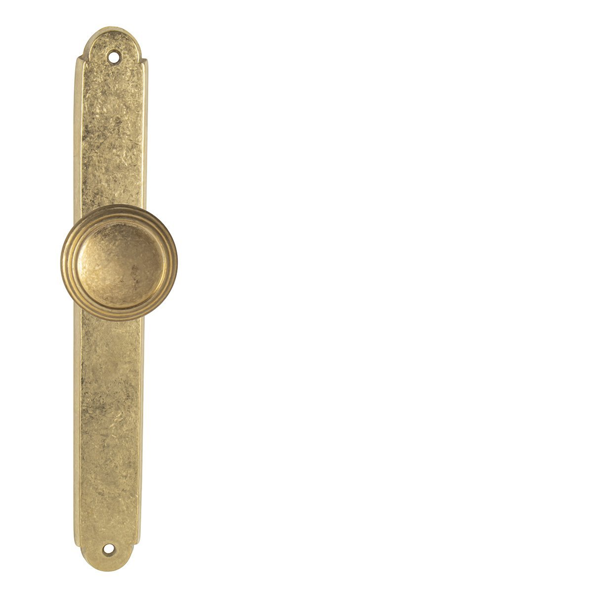 Dveře pevná rovná koule na rustikálním štítu je vyrobena z vysoce kvalitních materiálů - mosaz a je ošetřena povrchem. Míč má průměr 49 mm a rustikální štít měří 32 mm x 255 mm.