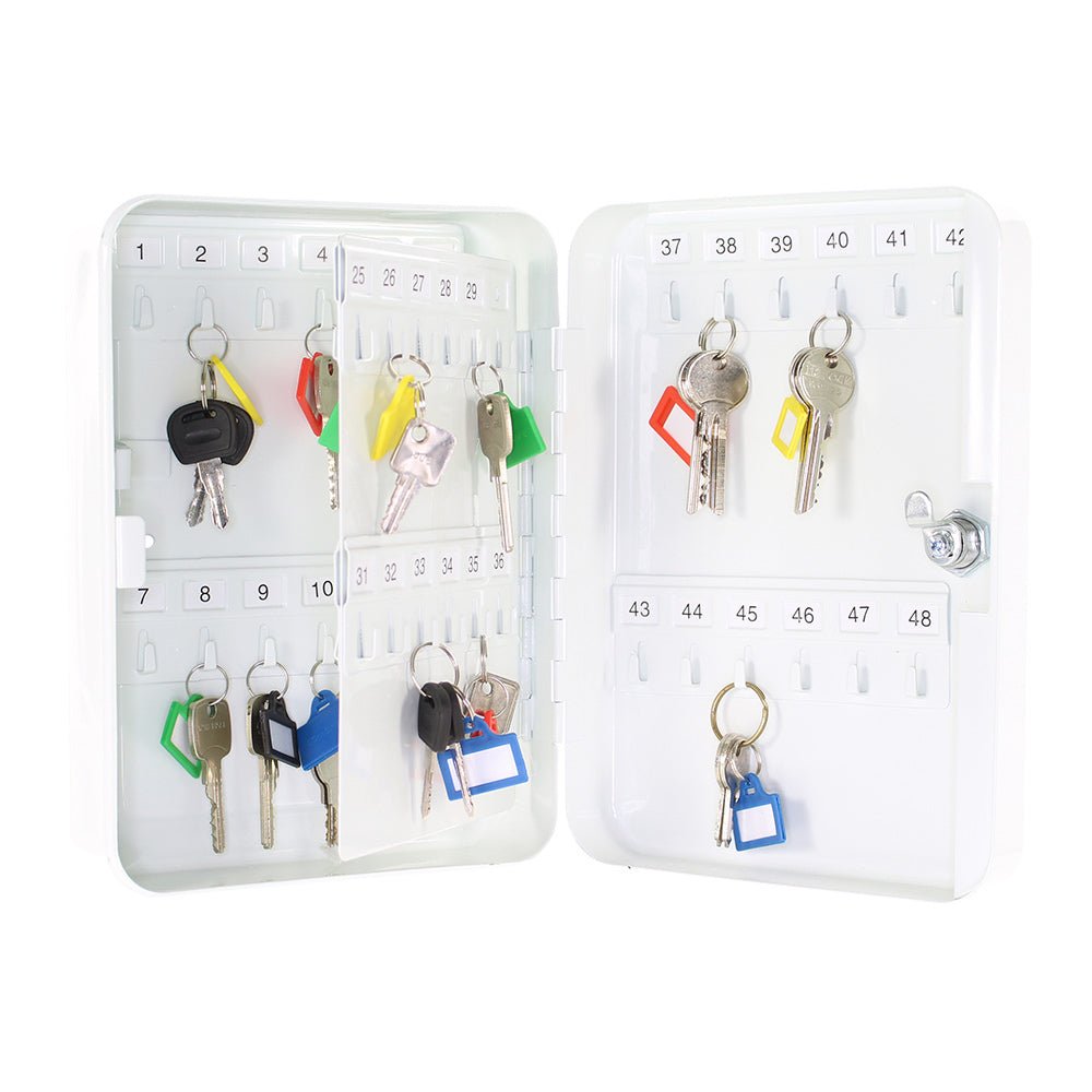 Klíčová pole TS48 umožňuje udržet přehled všech vašich klíčů. Kabinet je vhodný pro společnosti, ale také pro domácnosti. Háčky jsou pevně namontované a na ně lze zavěsit 48 klíčů. Balíček obsahuje nezbytný kotevní materiál pro montáž na zeď.