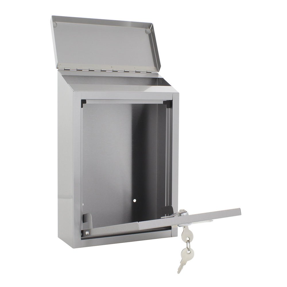 Klasická poštovní schránka CASA je vyrobena z vysoce kvalitního materiálu - nerezové oceli. Je odolný vůči nepříznivým povětrnostním podmínkám. Horní otvor je zakryt markýzou a je ideální pro formáty do velikosti A4. Poštu si můžete snadno vyzvednout díky velkým předním dveřím, které se otevírají dolů. V pravé horní části boxu je prostor pro jmenovku. Tři průhledná okna rychle odhalí, zda schránka obsahuje poštu. Součástí balení je i upevňovací materiál na zeď.