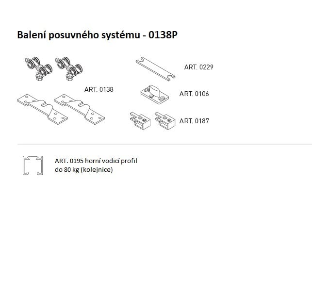 SC - posuvný systém SÉRIE 100 SILENT pro jednokřídlé dveře 1D 2000/80 obsahuje: