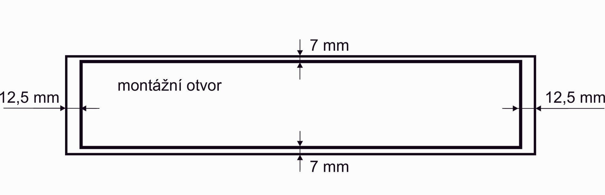 MONTÁŽ: délka montážního otvoru je o 25 mm kratší než celková délka roštu (tj. 12,5 mm na každé straně), šířka montážního otvoru je o 14 mm užší než celková šířka roštu (tj. 7 mm na každou stranu).