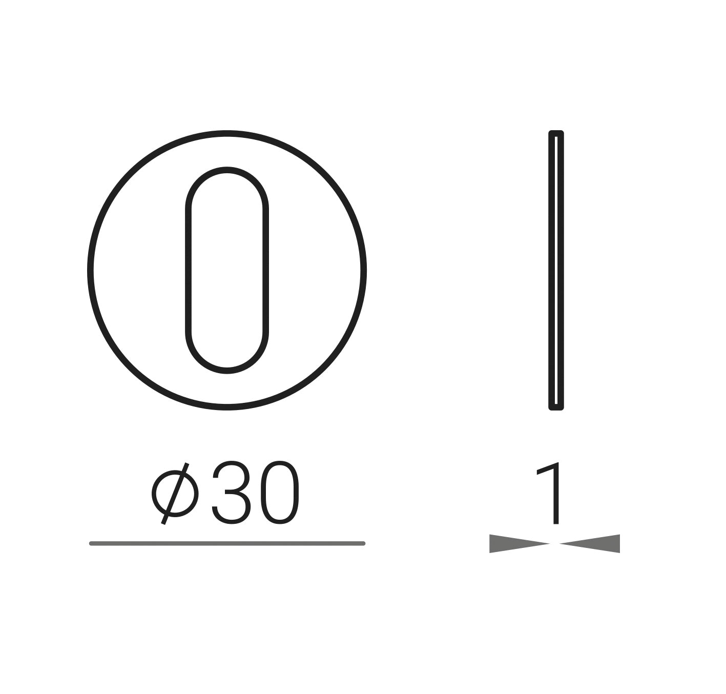 Kulatá rozeta je vyrobena z kvalitního materiálu zamak a má povrchovou úpravu. Rozeta má průměr 30 mm a tloušťku 1 mm. Rozeta má oválný otvor pro vnitřní klíč (BB). Balení obsahuje 2 ks rozet (pár). Rozety lze kombinovat s jakoukoliv klikou z kolekce NUDA.